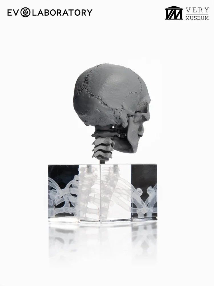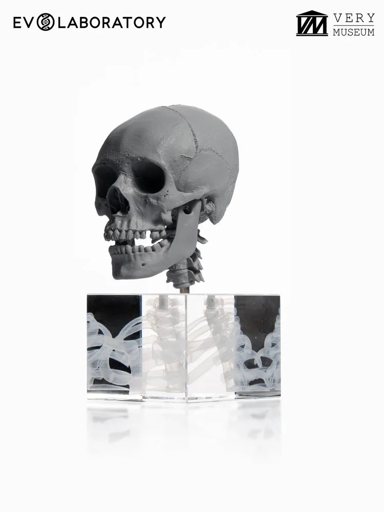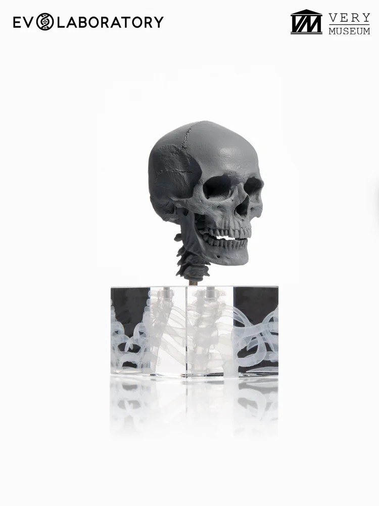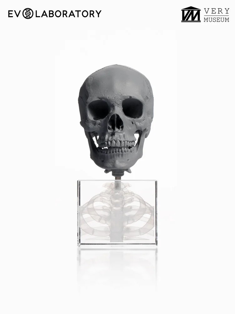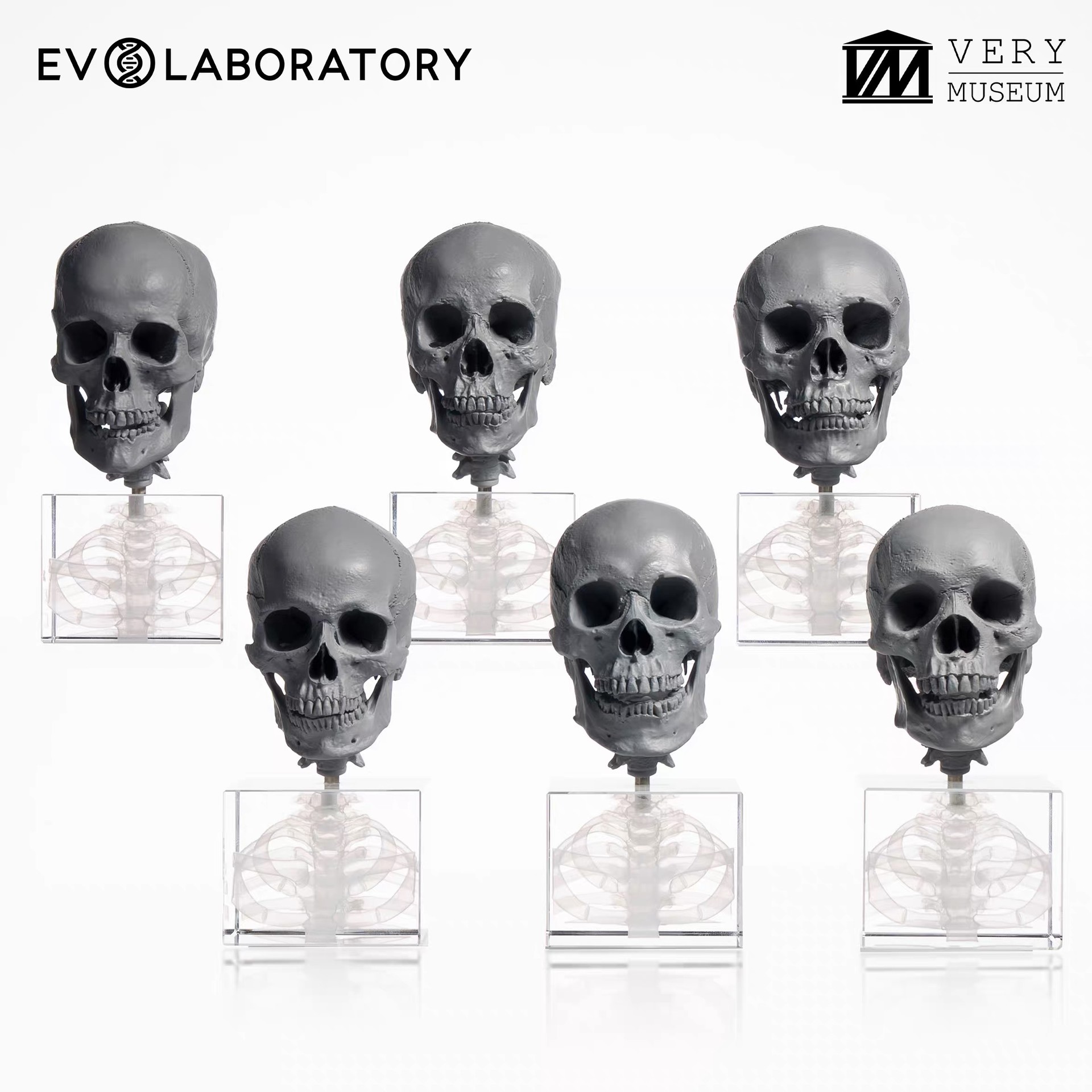 이 1:3 스케일의 6개의 인간 두개골은 지리적 조상(아프리카, 아시아, 유럽)과 성별의 특성을 나타내며 남성 두개골 3개와 여성 두개골 3개로 구성되어 있습니다, 모두 해부학적 골격 버전입니다