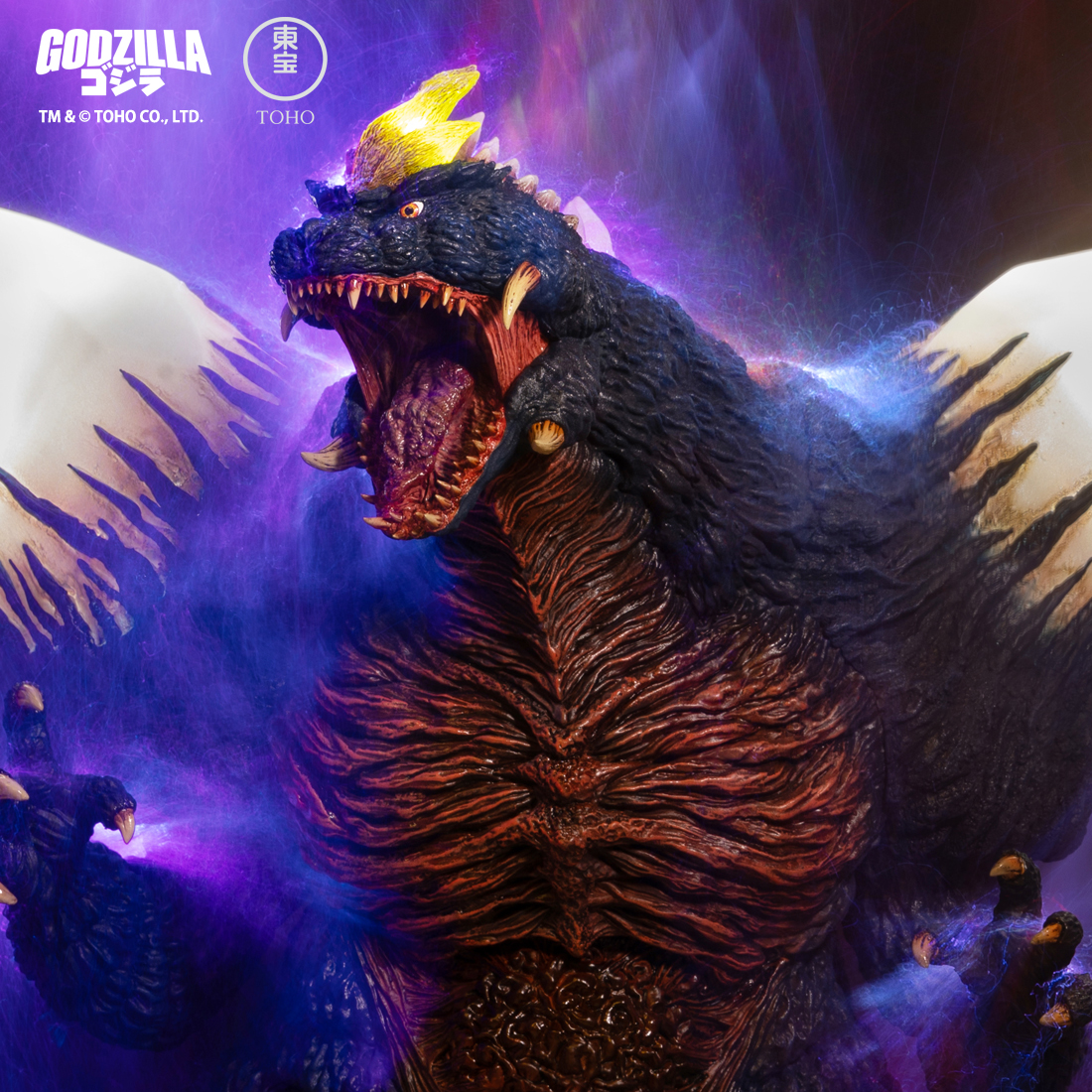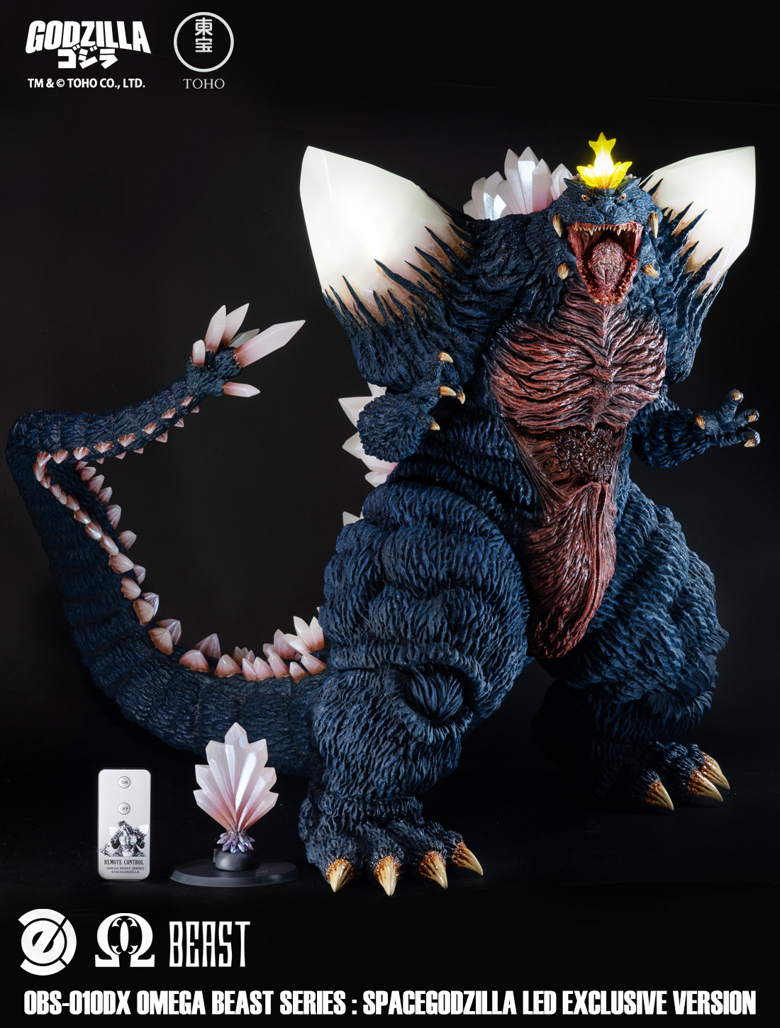 어깨 크리스탈과 헤드 스파이크에 LED 효과가 있어 영화에서 에너지 공격 시 스페이스고질라가 사용하는 에너지 수집 효과를 재현합니다.