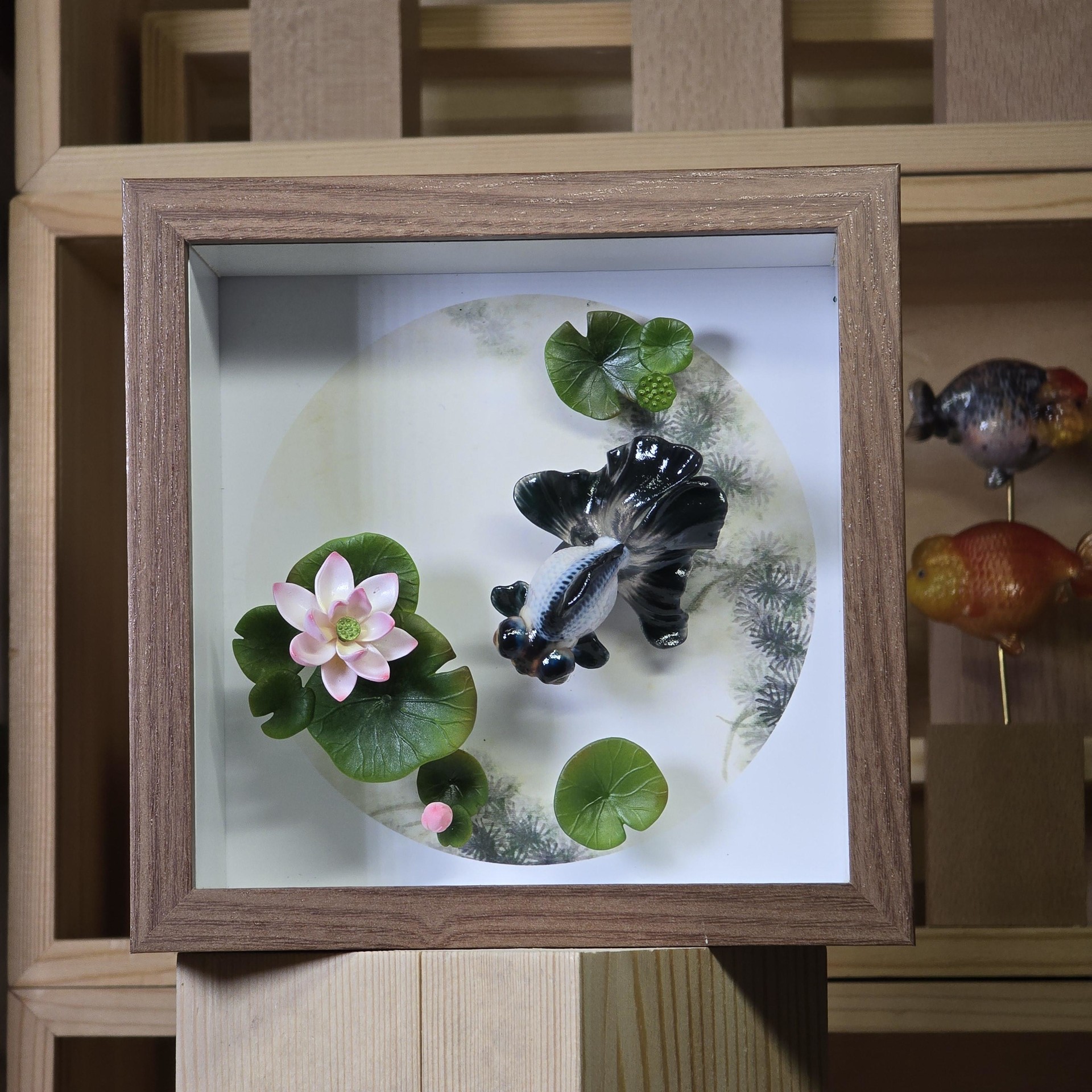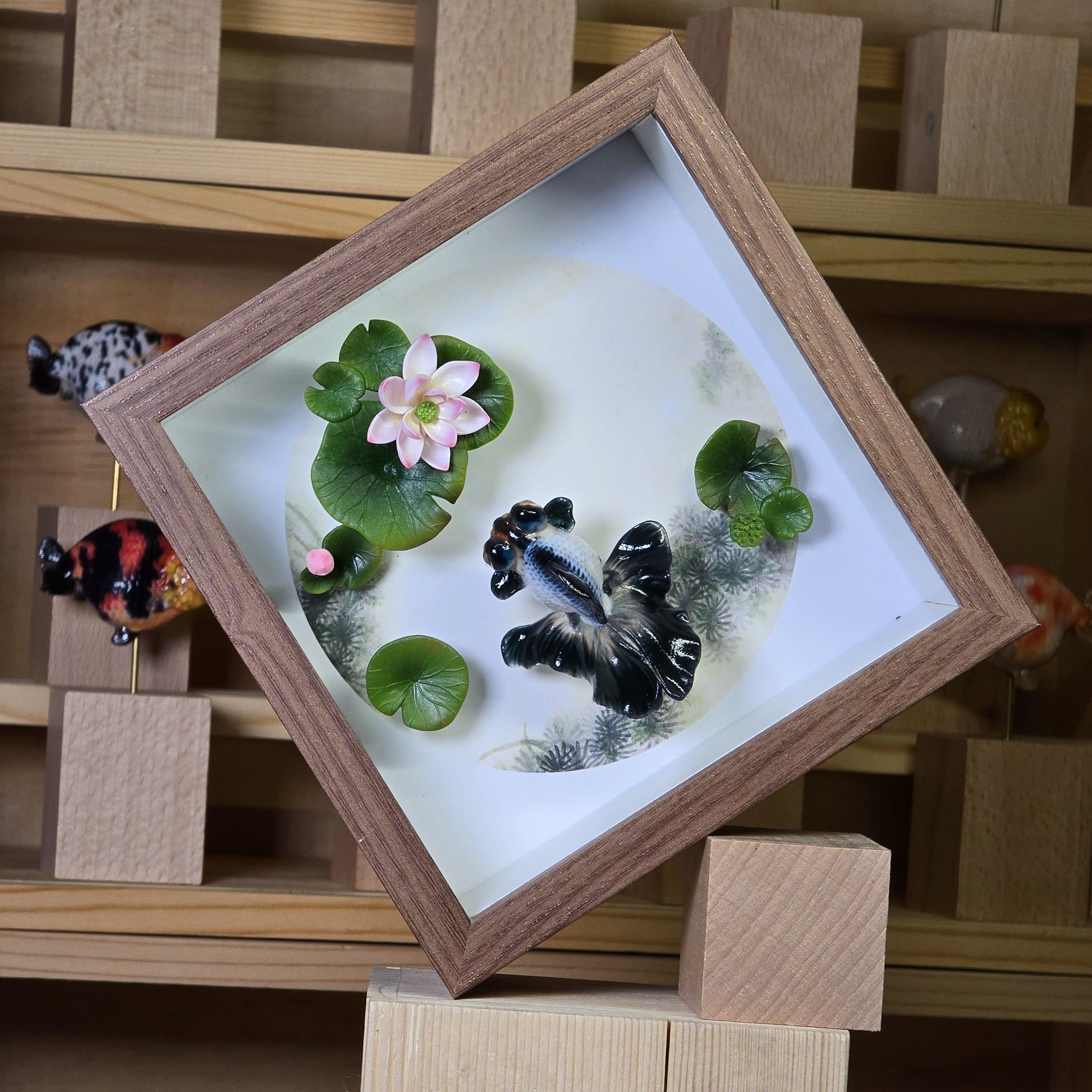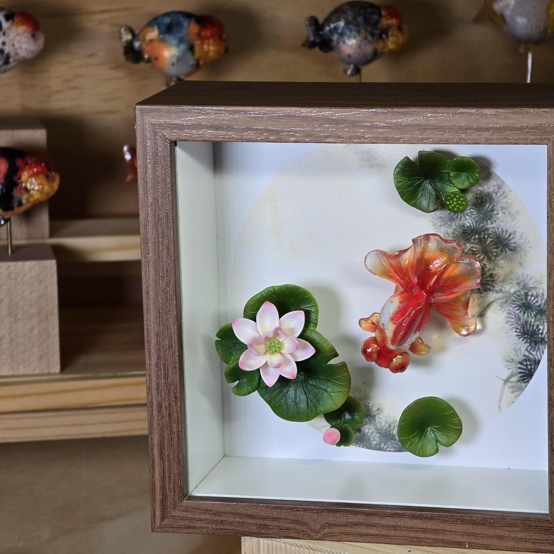 액자 버전 - 본체+나무 받침대+14/14cm 나무 액자+배경 그림+연꽃+연잎