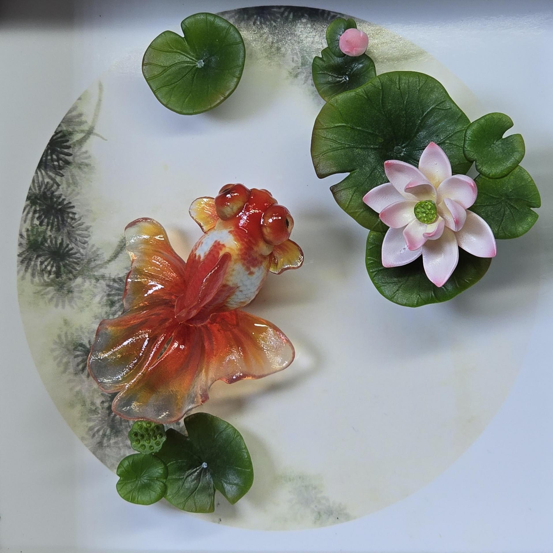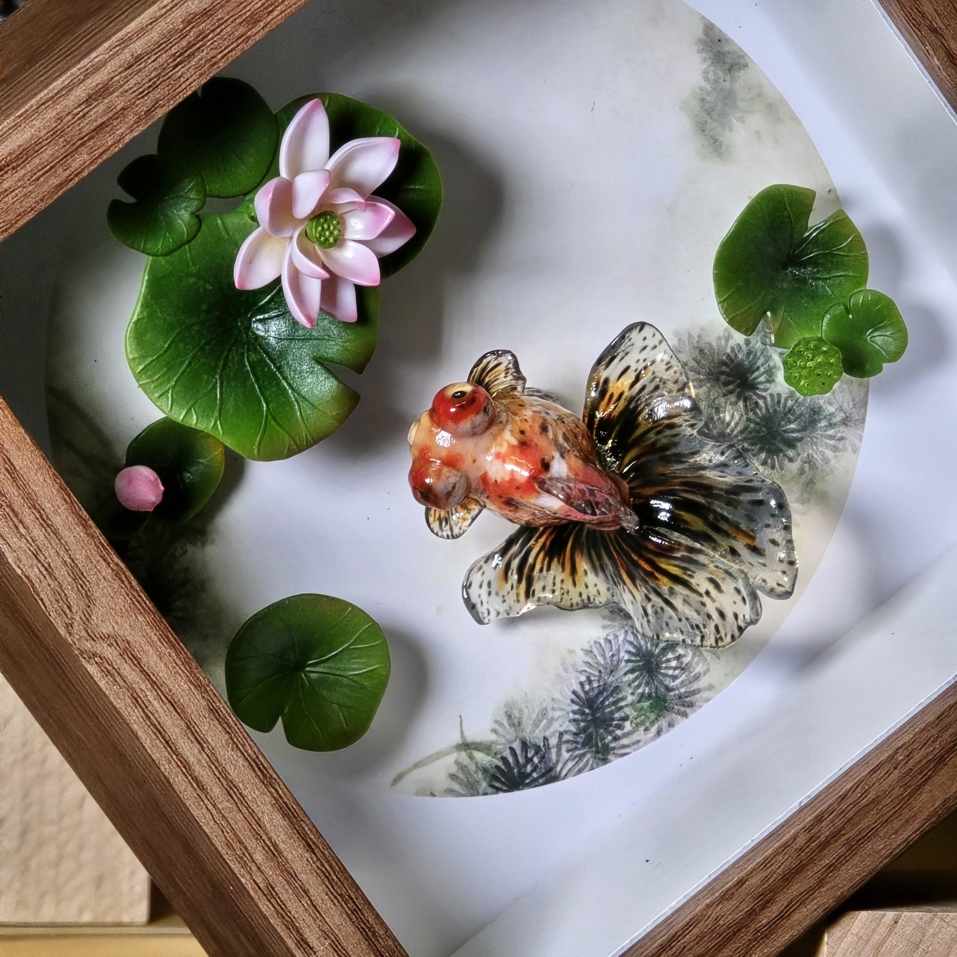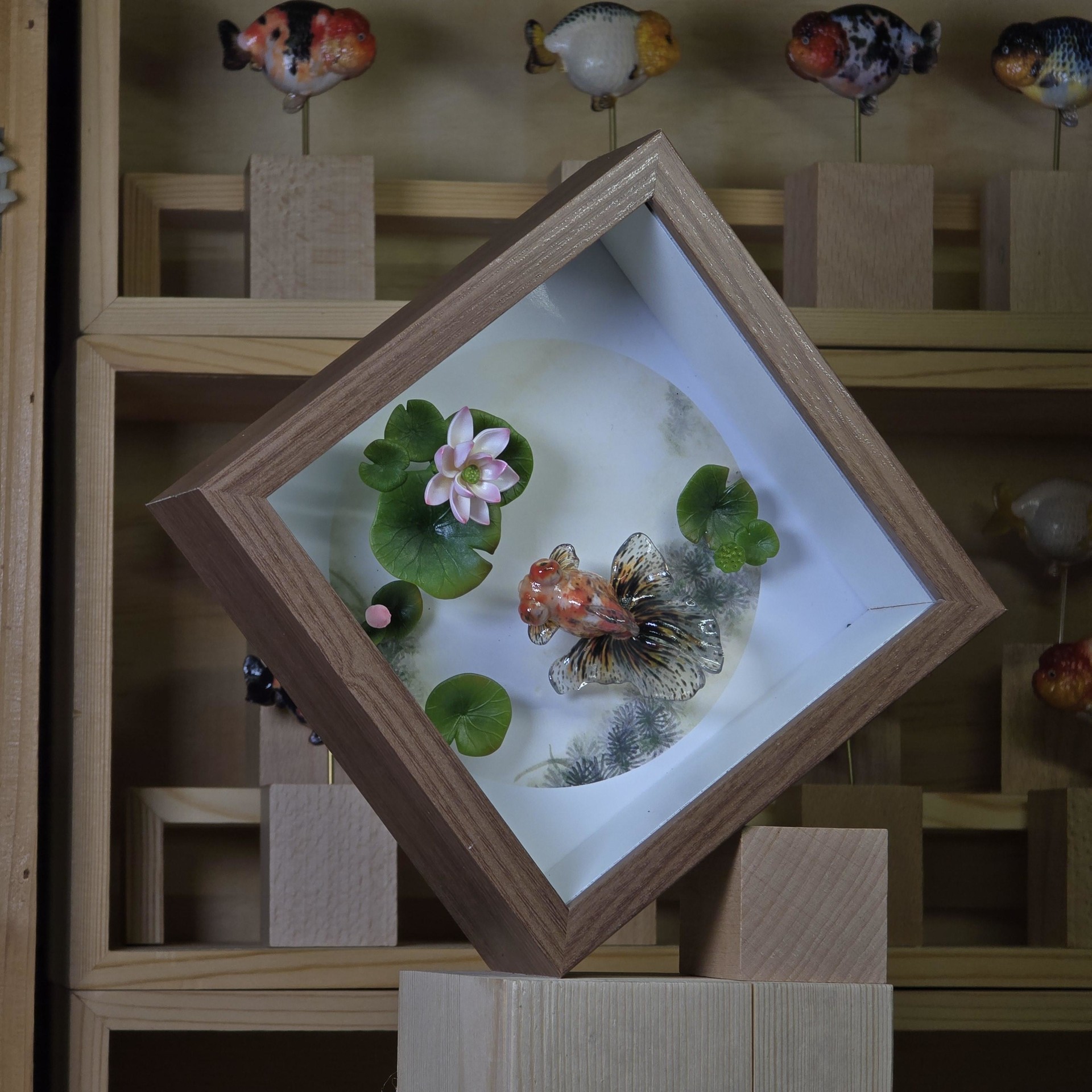 액자 버전 - 본체+나무 받침대+14/14cm 나무 액자+배경 그림+연꽃+연잎